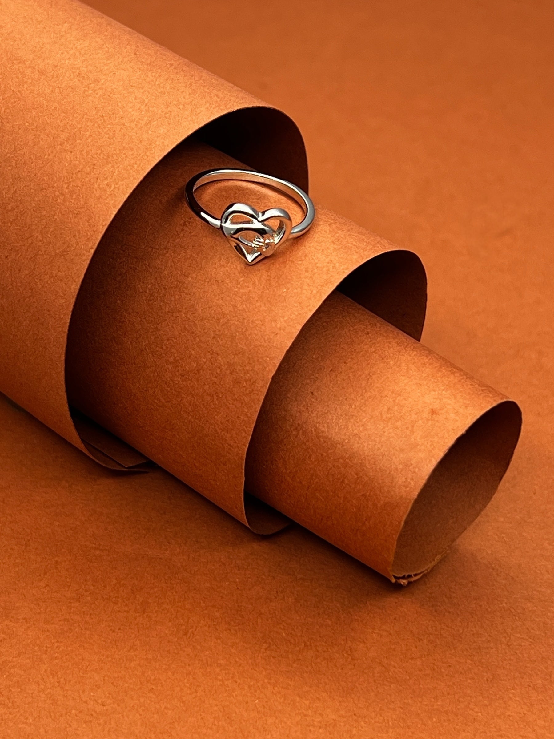Celebrate everlasting affection with this graceful silver heart ring, featuring a delicate open-heart design intertwined with a shimmering single stone at its center. The fluid curves of the heart create a timeless silhouette, symbolizing connection, warmth, and romance. Lightweight and elegantly minimal, it’s the perfect expression of love — whether gifted or worn as a daily reminder of someone special.
